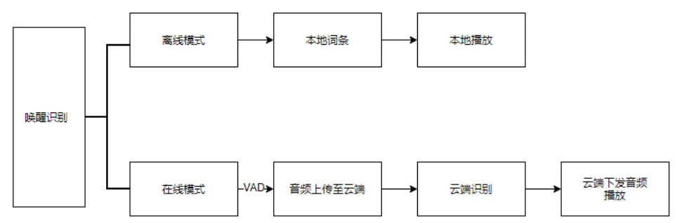 复杂/联网请求: 如“讲恐龙故事” → WT2606A通过UART传给WiFi模块 → 上传云端AI处理 → 生成角色语音回复 → 音频流下发 → WT2606A驱动播放。