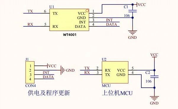 实时直播变音方案则针对日益增长的直播市场需求。通过UART接口连接主控芯片,WT2003Hx可实现直播语音的实时变音处理。主播说话时,声音经芯片实时变声后传输至直播平台,延迟低于100毫秒,确保互动流畅性。方案支持预设多种角色音效,一键切换,大大丰富了直播内容的娱乐性。