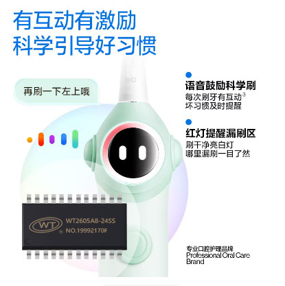 2024年,国内电动牙刷市场规模成功突破300亿元,年复合增长率持续领跑消费电子赛道。然而,当“能震动”早已不再是卖点,年轻用户开始追问“它能和我说话吗”“能记录我的刷牙习惯吗”时,整个行业正站在从“基础电动化”迈向“智能化、情感化”的关键分水岭上。这道坎,考验的不再只是品牌的营销能力,而是芯片层面的硬核技术实力。对于众多电动牙刷厂商而言,广州唯创电子推出的 WT2605A8-24SS 高度集成语音与控制SoC,正以一颗芯片打通双模蓝牙、高保真语音和电机驱动,试图重构电动牙刷的智能体验。