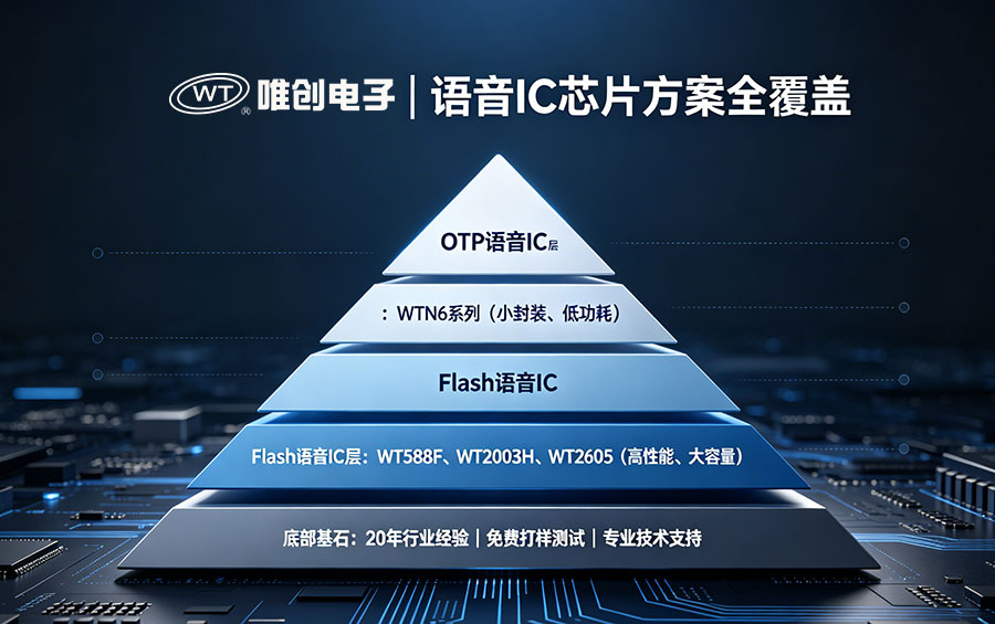 随着智能终端的功能边界持续拓宽,承载人机语音交互的底层核心——语音芯片,正扮演着愈发关键的角色。面对市场上琳琅满目的语音方案,工程师和产品经理最常遇到的一个问题便是:OTP语音芯片和Flash语音芯片到底有什么区别?究竟该选哪一种?本文将从存储方式、成本、功耗、应用场景等多个维度进行全面对比,并介绍国内知名语音IC厂家 广州唯创电子旗下的代表性产品矩阵,帮助您在项目选型中做出最佳决策。