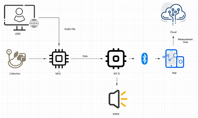 广州唯创电子针对不同场景需求,推出三大核心方案,助力智能血压计实现功能升级与成本优化:方案一:基础型语音播报方案