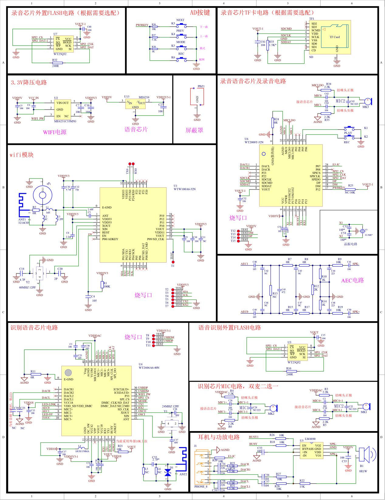 支持外挂SPI-Flash、TF卡、U盘等多种存储介质,最大可扩展至32G的TF卡或U盘,录音时长可达数小时48。这种设计不仅满足大容量存储需求,还支持用户通过USB接口直接更换音频内容,提升使用便捷性;