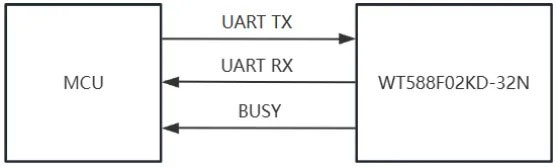 WT588F02KD-32N通过UART串口与主控MCU通信,指令传输简洁高效。芯片支持BUSY状态反馈,确保语音播放完整性。在电饭煲中的应用场景丰富而实用: